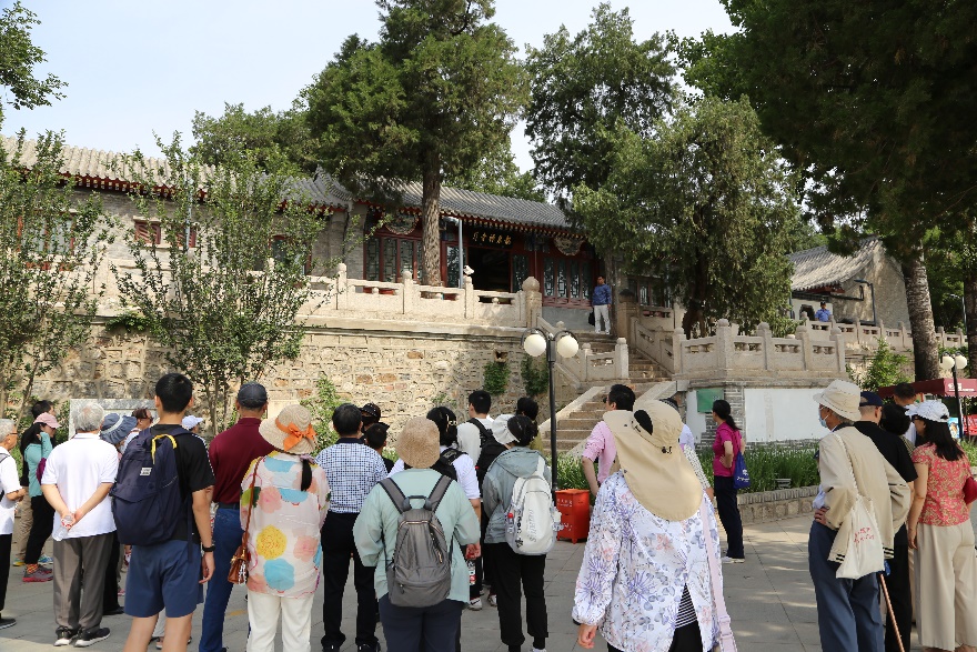 走下山路,终点来到公园标志性的九龙池。明隆庆年间,白浮泉以“龙泉喷玉”列入“燕平八景”之一,到清康熙年间,则成为现在著名的“龙泉漱玉”美景。虽然当天 “九龙漱玉”的美景未能重现,老师们还是在湖边漫步中领略大运河源头的历史韵味,感受大运河承载的超越时空的文化记忆。