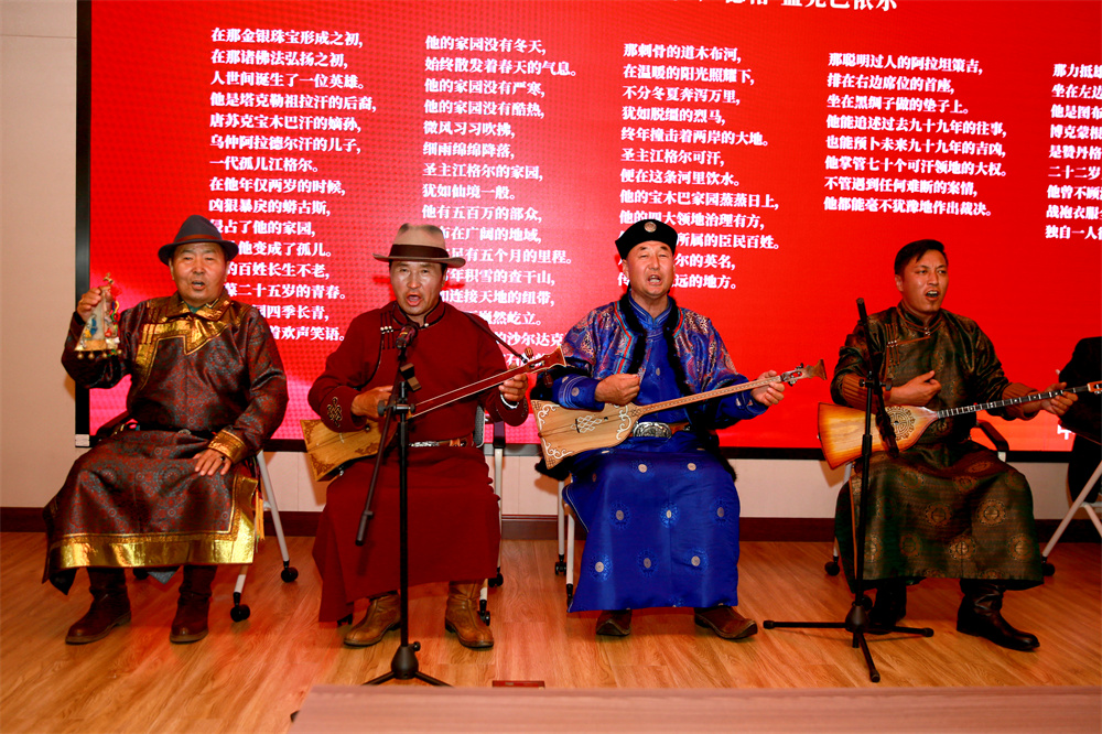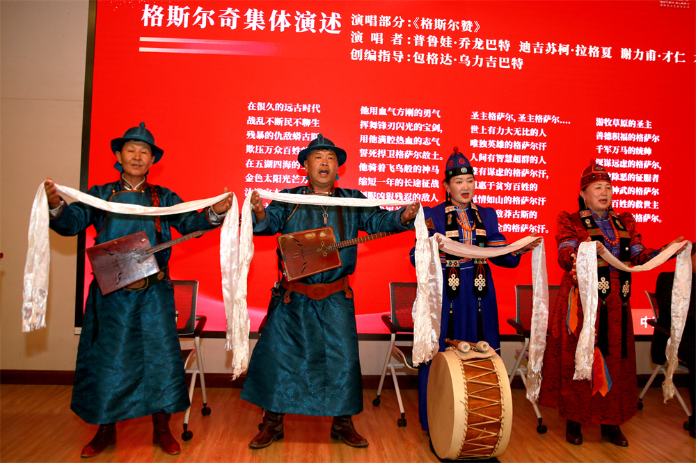 最后,中国民间文艺家协会代表荣书琴和新疆文联代表邓选斌共同向拼搏手机版登录入口赠送了中国三大史诗的成果丛书,传承人们向本次活动主办单位的领导和专家们赠送哈达以示祝福。