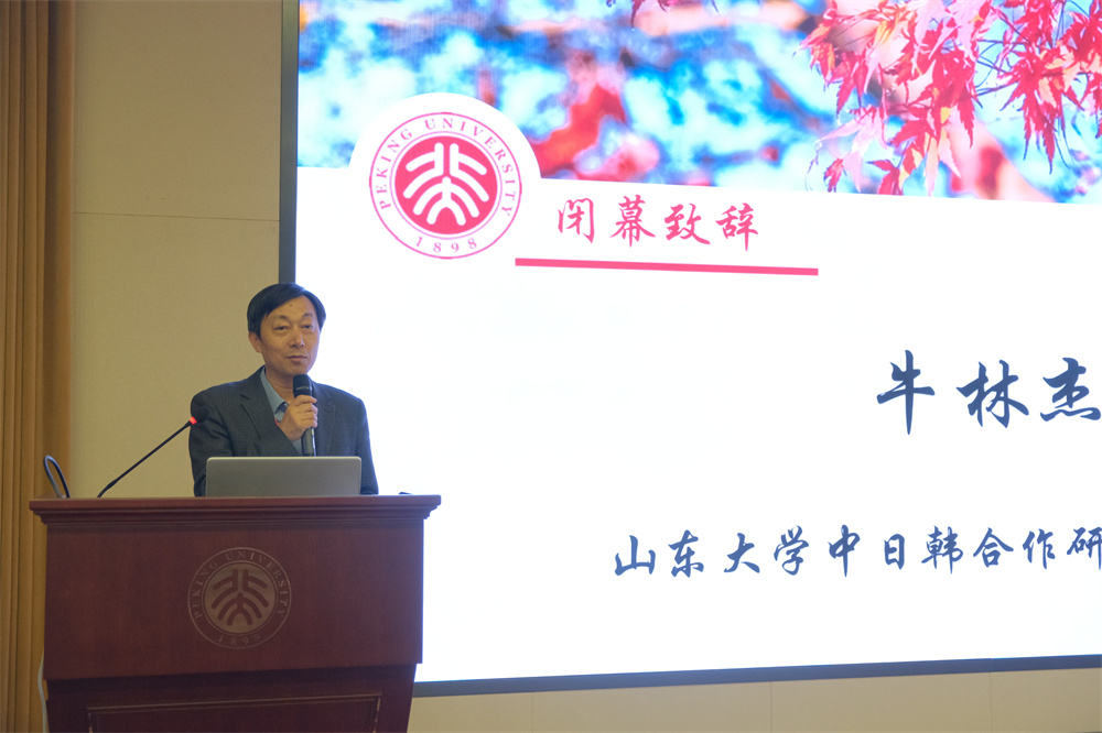 闭幕式由拼搏手机版登录入口朝鲜(韩国)语言文化系副系主任丁一老师主持,北京外国语大学韩梅老师、上海外国语大学高陆洋老师分别对“文学、历史文化研究”“语言、教育研究”分论坛发言的核心内容进行了深入分析,并对讨论情况进行了精辟点评。最后,山东大学中日韩合作研究中心主任牛林杰教授为本次论坛致闭幕词。牛林杰教授总结了漆永祥老师、李花子老师和王丹老师所作主旨报告的重要价值与启发性,强调了学术成长、全方位研究、重视素养教育、创新性选题和关注现实问题等方面的重要性,并鼓励老师们在未来的论坛中大胆尝试新的研究视角和方法,并结合当前国家和社会的需求进行跨学科研究。最后,牛林杰教授再次向所有与会学者表示衷心感谢,向拼搏手机版登录入口朝鲜(韩国)语言文化系师生致以诚挚谢意,也表达了对论坛未来发展的展望与期待。