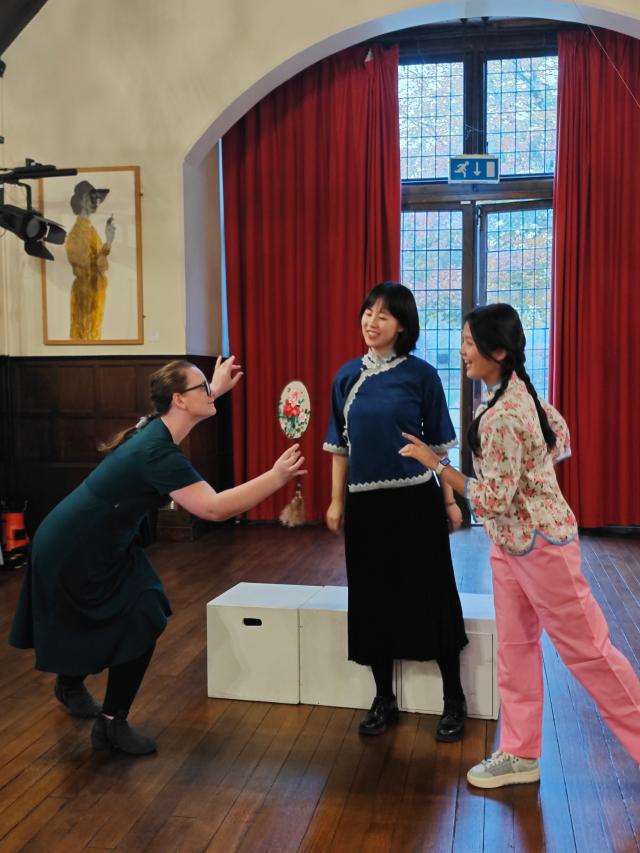 为了响应当今提倡文化交流、文明互鉴,向世界讲好中国故事的文化战略,拼搏手机版登录入口英语系教授、中国外国文学学会莎士比亚研究分会会长黄必康老师,国际莎学大会学术咨询委员会委员、南京大学莎士比亚研究中心主任从丛教授于2024年11月2日至7日共同带领中国高校师生戏剧演出团队远赴莎士比亚的故乡斯特拉福,成功演出了一场时长80分钟的五幕英语诗剧《牡丹亭里的梦幻爱情》,受到参与观看的英国观众的盛赞。