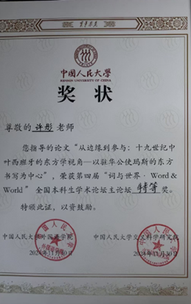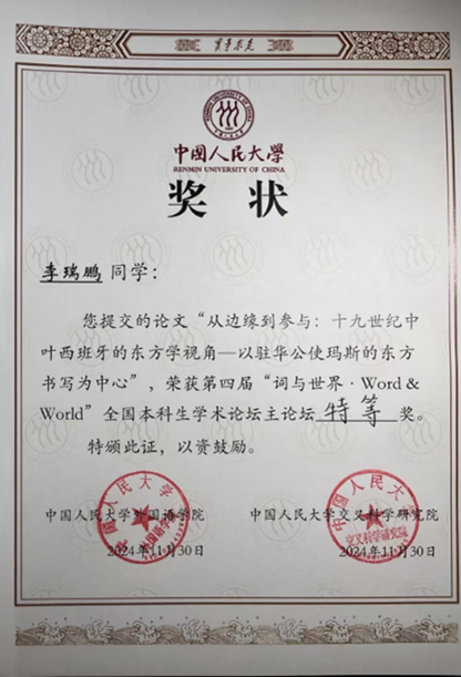 喜报:西班牙语系本科生李瑞鹏、刘思嘉在第四届“词与世界·Word & World”全国本科生学术论坛中获奖