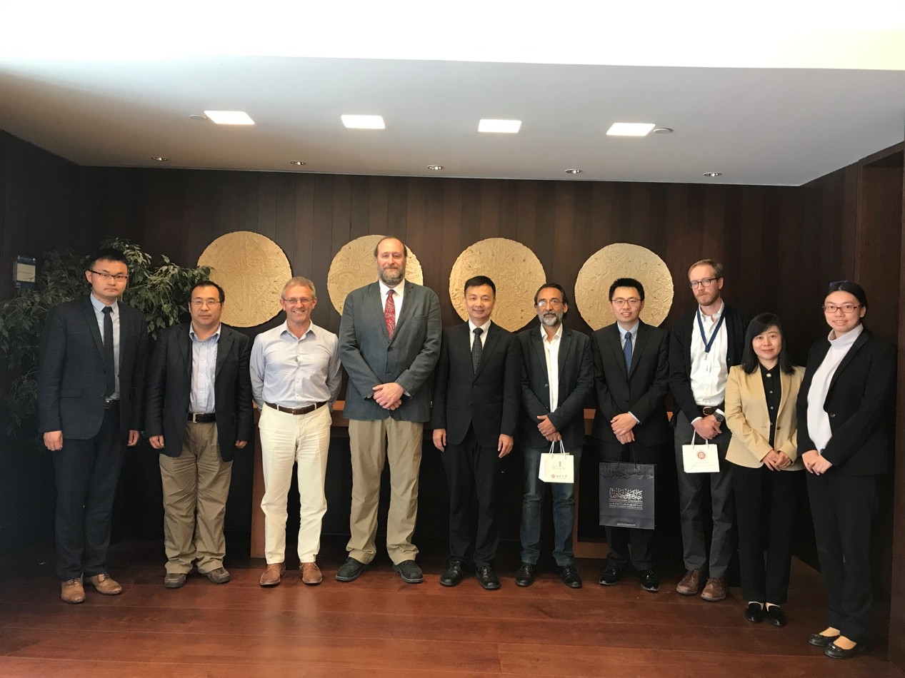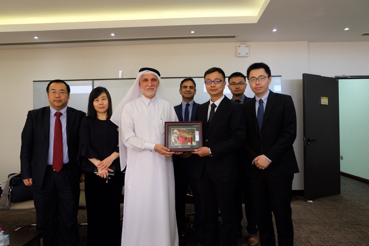 4月17日至20日在卡塔尔访问期间,代表团第一站参访机构为卡塔尔大学。卡塔尔大学副校长达尔维什•阿卜杜拉赫曼(Darwish Abdulrahman H. Al-Emadi)、副校长欧麦尔•安萨里(Omar Al-Ansari)、副校长哈立德•哈提尔(Khalid Al-Khater)和国际事务处处长凯撒•沃曾(Cesar Wazen)接见了团队师生。北京大学卡塔尔讲席教授吴冰冰博士首先向卡塔尔大学方面介绍了卡塔尔讲席在北京大学的运作现状和未来的发展规划,以及拼搏手机版登录入口国别和区域研究专业的基本情况,副校长达尔维什对此给予了肯定与赞赏。双方还表示,希望能够进一步扩展北京大学与卡塔尔大学的合作空间,在继续夯实和加强卡塔尔大学与拼搏手机版登录入口合作的基础上,充分发挥两所大学的综合性优势,寻求两校在医学研究领域的合作空间。会谈结束后,团队师生在工作人员的带领下参观了卡塔尔大学校园。