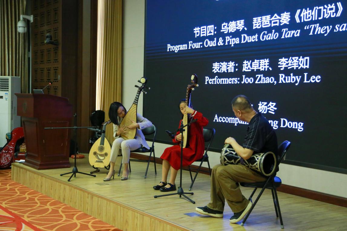 在海湾音乐环节,赵卓群与李绎如在杨冬的中东鼓伴奏下,共同呈现乌德琴与琵琶合奏《他们说(Galo Tara)》,将沙特传统曲调与中国琵琶元素巧妙融合,张弛有度,别具韵味。