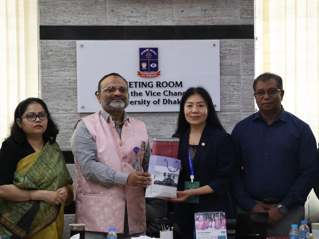 随后,调研团拜会达卡大学校长尼亚孜·阿哈迈德·汗(Niaz Ahmed Khan)教授。双方回顾了两国传统友谊,就深化高等教育合作达成共识,重点探讨了在数字经济、人才培养等领域的合作前景。此次访问为两校在“一带一路”框架下的务实合作开辟了新路径,将进一步提升中孟教育交流水平。