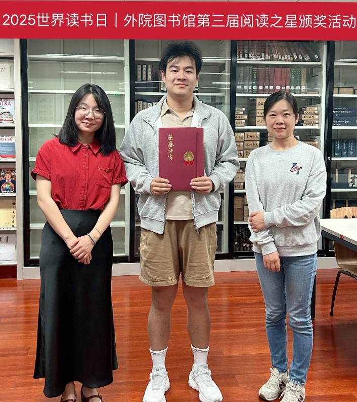 颁奖仪式上,分馆馆长张晓雁向获奖者颁发证书与纪念奖品,并阐释活动初衷:“阅读之星评选不仅是对借阅数据的肯定,更是希望通过榜样引领,让‘多读书、读好书’成为外院师生的日常习惯。” 她特别提到,外院分馆藏有大量多语种原版著作和学术文献,此次获奖的范晔老师长期借阅西班牙语经典文学,吴振宇、吴天鹏同学则在专业书籍与通识读物中保持高频阅读,“他们的阅读轨迹正是外语学科‘专业+人文’培养理念的生动注脚。”