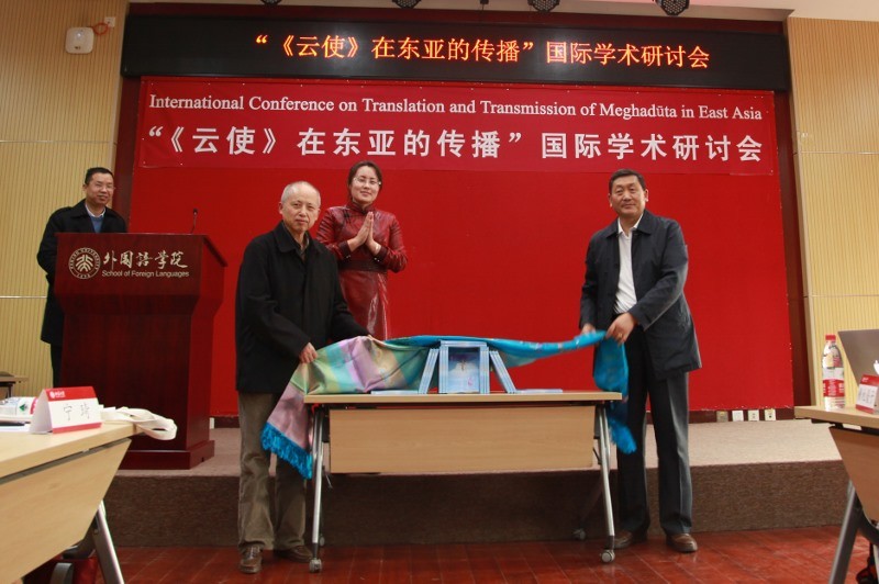 在《云使》的感召之下,本次会议一共收到了来自印度、日本、蒙古国和我国多所高校及研究机构学者们的15篇论文全文。其中一位日本学者和一位在印度旅学的藏族学者未能亲自前来参加会议外,其余13位学者的论文均得到了充分讨论。论文集中包含了汉文、英文、日文、藏文、回鹘蒙古文和基里尔蒙古文六种文字、五种语言的论文。多国学者们从各自不同的民族、语言、文化、历史背景来探讨古代印度经典诗歌《云使》及其在东亚各国的传播与翻译。这无疑对课题的研究提供了很大的帮助,而且还促进了国内外同行学者的交流与合作以及国内各高校科研单位之间的合作、老一辈学者和中青年学者之间的交流合作,不仅在学术上,还有情感上产生更多的共鸣。