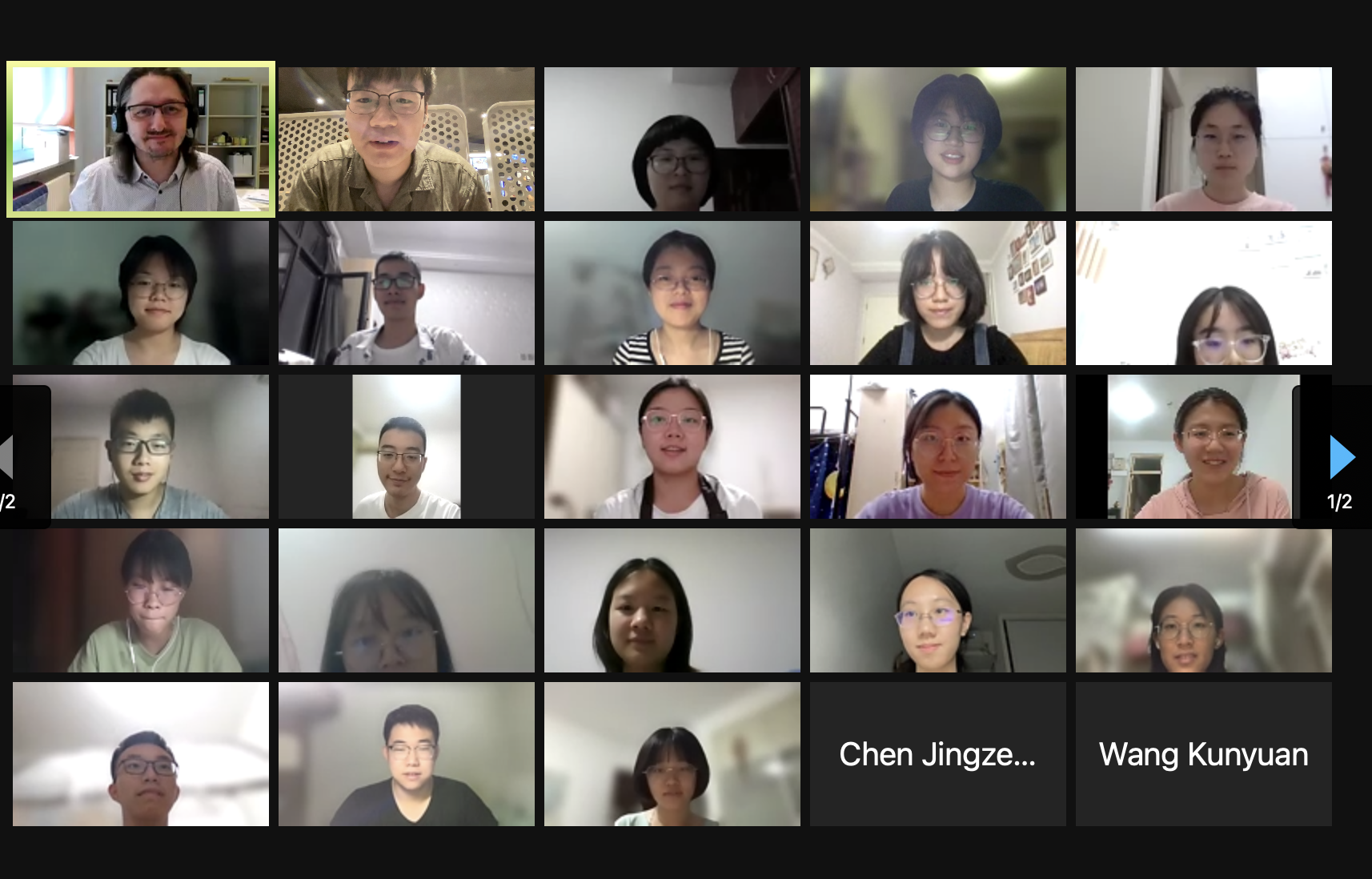 暑期学校的课程共分为语言课和研讨课两部分。为保证授课质量,暑校依据面试语言评估及分级考试结果,分设5个语言班开展小班教学,同时安排北京大学德语系三位研究生担任助教,负责课后答疑并组织讨论。在语言课之外,来自柏林洪堡大学的凯文•伦克(Kevin Lenk)讲师、黑格教授和希斯瑙尔博士(Dr. Christian Hißnauer)分别开设了“战后柏林史”、“国家与法律”及“文学与媒体”三门专题研讨课,为同学们深入浅出地讲授了德国社会的方方面面,并辅以小说《朗读者》及德国电视剧《犯罪现场》等案例,生动地将学术研究与社会现实结合在了一起。同时,课程还分享了城市导览、电子展厅、观影推介等线上探索柏林的方式,让同学们在丰富多彩的课后活动中获得更直观的体验。