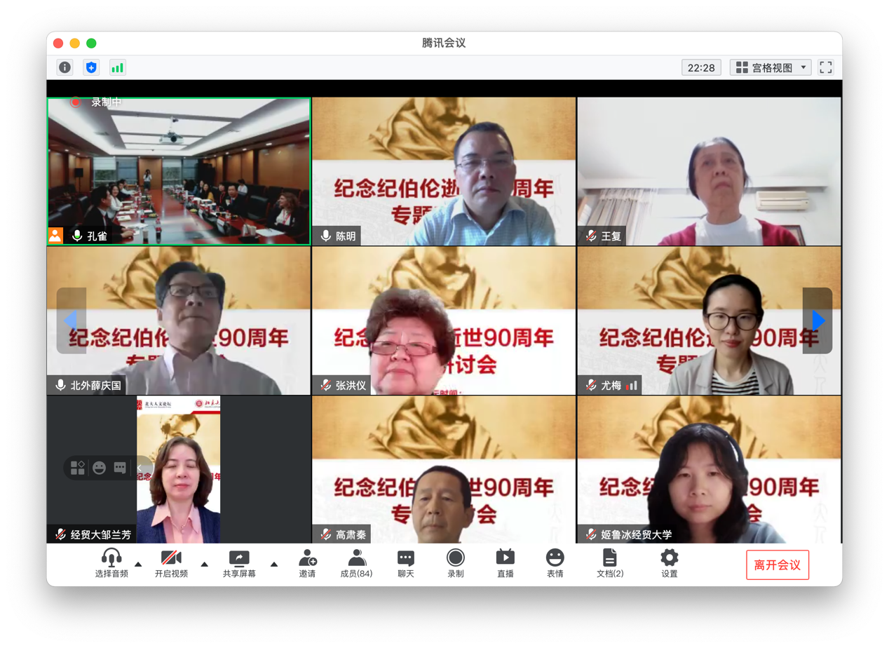 第二时段的主旨发言由北京外国语大学尤梅副教授主持。薛庆国教授以《纪伯伦的当代意义》为题,认为纪伯伦不仅是文学家,更是先知先觉的思想家,他对人类大同、文学创新、政治制度、人与自然和谐等主题有着批判性的深刻思考,因此重读纪伯伦非常具有当代意义,甚至是永恒意义。上海外国语大学蔡伟良教授以《重读纪伯伦——泪与笑的境界》为题,从语言和文学形态的视角出发,关注纪伯伦在当时文学形态较为保守的时代背景下所体现出的创新精神,强调了作家的思想高度和博爱精神。对外经济贸易大学邹兰芳教授在题为《“神的种子”——纪伯伦与阿拉伯文学的现代性》的报告中,聚焦纪伯伦的诗性语言,提出纪伯伦的文学作品兼具抒情性和革命性,对阿拉伯文学现代性的真正到来和发生起到了引领性作用。