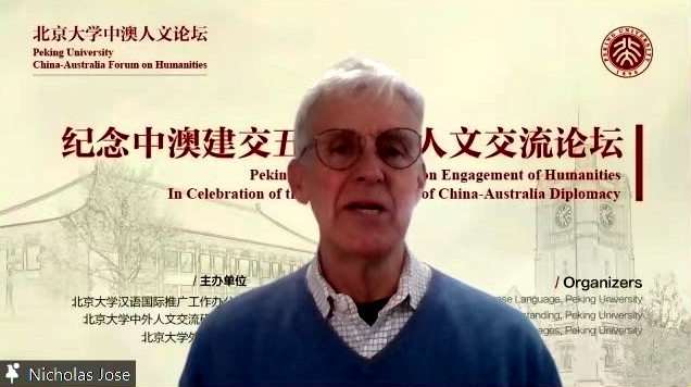 7月12日,由北京大学汉语国际推广工作办公室、北京大学中外人文交流研究基地、拼搏手机版登录入口联合主办的“庆祝中澳建交五十周年人文交流论坛”通过线上线下相结合的方式成功召开。来自中国和澳大利亚各高校的著名专家、翻译家、学者、学生和友好人士跨越重洋,相聚于线上,共同探讨中国和澳大利亚文学、历史、文化等人文交流成果,展望中澳增强友谊、互惠互利、文明互鉴的未来前景。