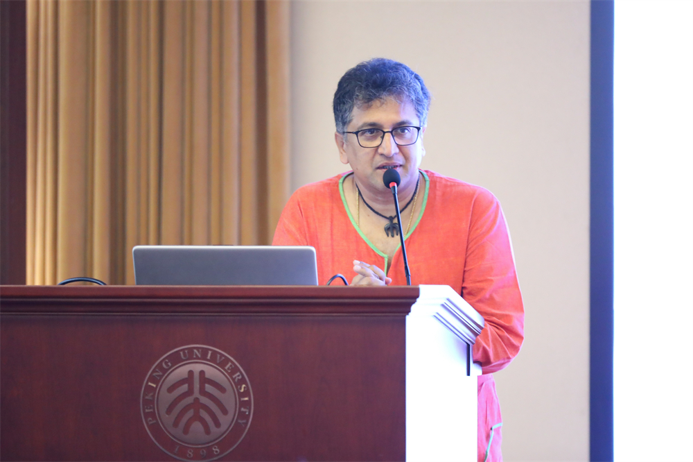 印度国际大学中国学院院长阿维吉特·班纳吉(Avijit Banergee)发表讲话,全程流利的中文表达引得赞叹。他提到,印中文化交流由来已久,可追溯至古代的文化互动。他接着强调了泰戈尔是近代印中人文往来的重要代表,并回顾了泰戈尔访华友好互动细节。此外,他也着重强调了泰戈尔建立印度国际大学背后共创东方文明的理想,并感谢了中国学院创始人谭云山先生对此做出的贡献。最后,他表示泰戈尔是印中两国深化互信、增进友谊与合作的重要桥梁。