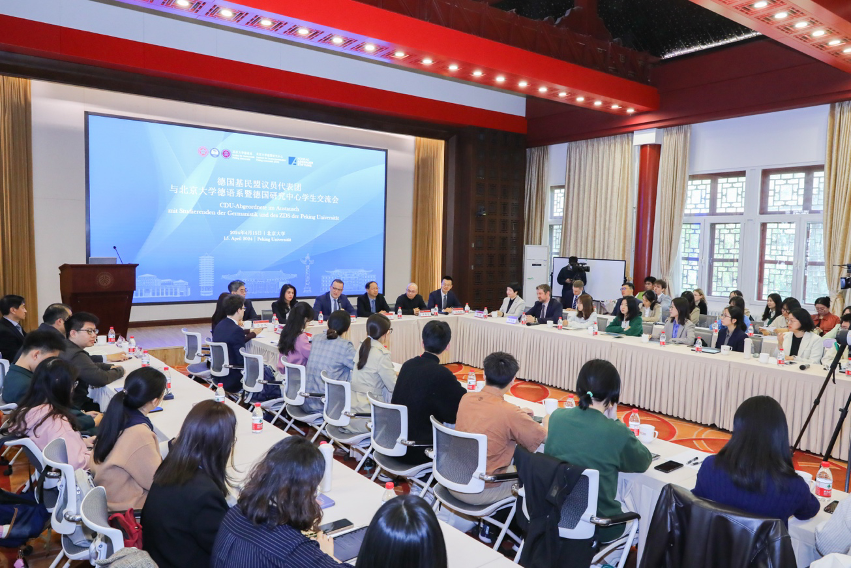 2024年4月15日,德国联邦议会议员、基民盟-基社盟议会党团副主席、联邦卫生部原部长延斯·施潘(Jens Spahn),联邦议会议员居乐(Serap Güler)率德国联邦议会基民盟议员代表团访问北京大学。北京大学党委书记、校务委员会主任郝平,校长、中国科学院院士龚旗煌分别会见代表团一行。中国德国友好协会会长、中国驻德前大使史明德,中国人民对外友好协会欧亚部副主任吕宏伟等陪同代表团来访,北京大学党委常委、副校长方方,拼搏手机版登录入口党委书记李淑静等陪同会见。拼搏手机版登录入口德语系、北京大学德国研究中心组织近四十名来自各个年级的优秀学生代表,与施潘一行交流座谈。德国研究中心主任黄燎宇、德语系主任胡蔚参与交流活动。活动由德语系副主任毛明超主持。