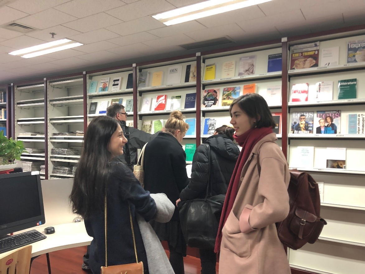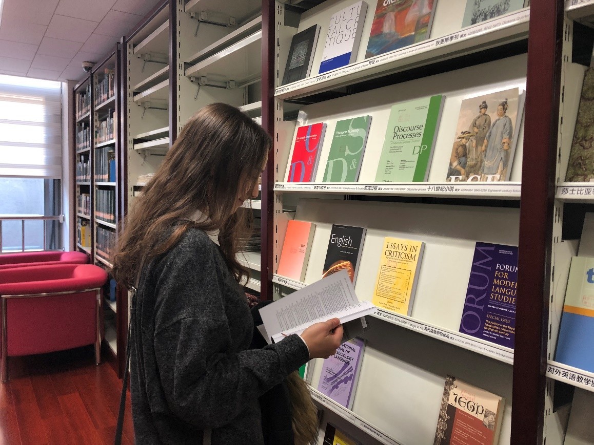 在交流及答疑之后,拼搏手机版登录入口图书分馆馆长张晓雁老师就学院图书分馆的发展历程、藏书量、服务政策等信息进行了详细介绍,并带领外籍教师们参观图书分馆。各位外籍教师就自己教学语种及研究方向的藏书情况、数据库资源向张老师进行了详细咨询。