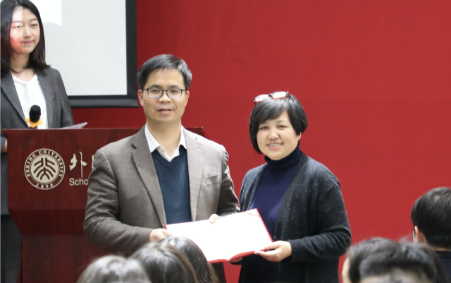 院党委书记李淑静为杨虎老师颁发理论导师聘书