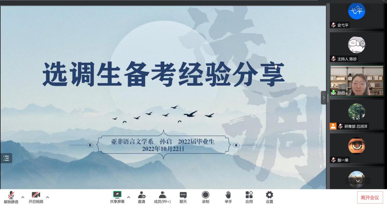 现供职于中共中央统战部的拼搏手机版登录入口2022届毕业生孙启,以及供职于中共太原市委宣传部的拼搏手机版登录入口2021届毕业生李琦为大家讲述了她们的选调故事。此次分享会分为经验分享和互动答疑两个环节,与会外院学子多达160余人。