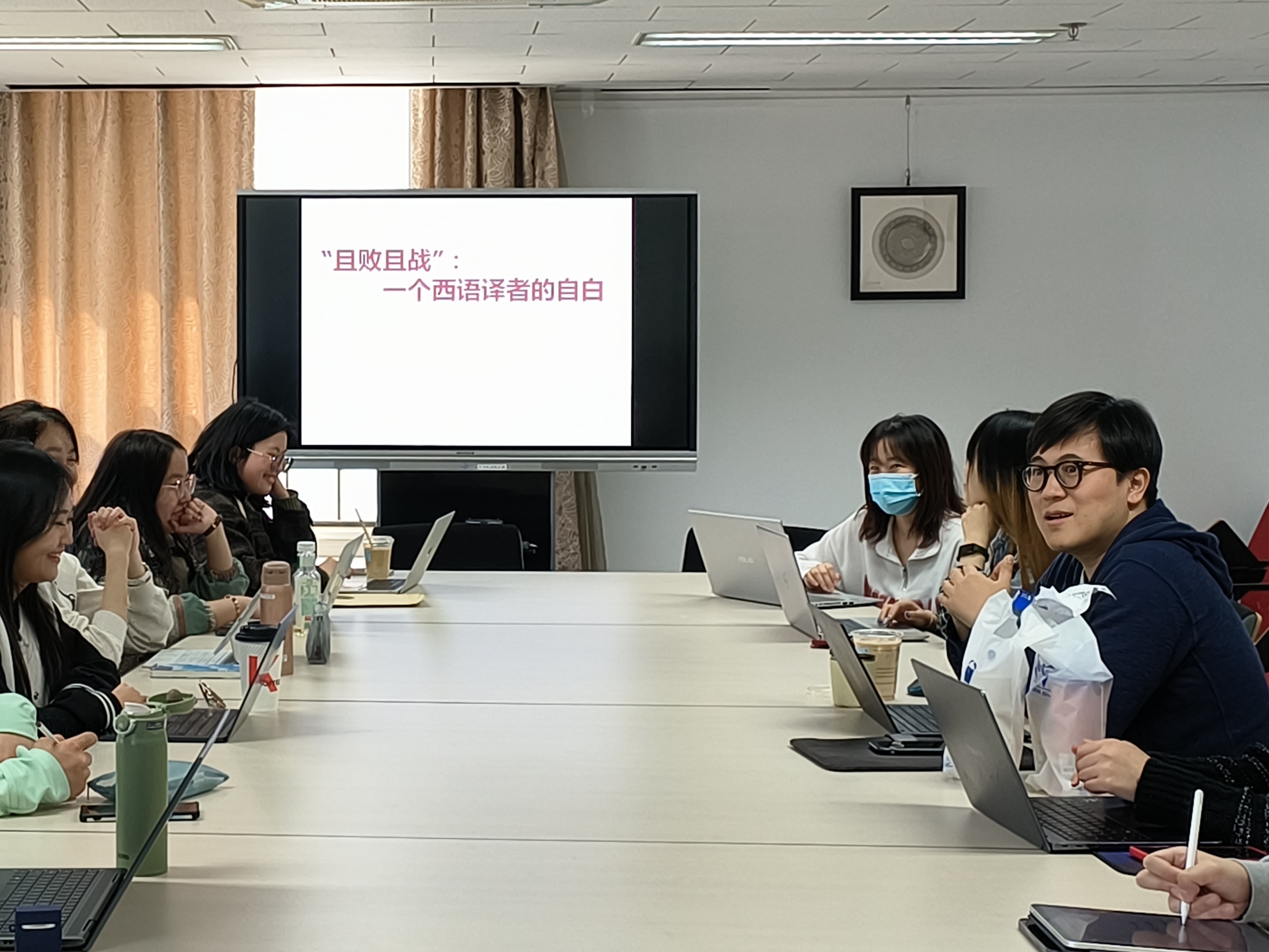 3月12日下午,由拼搏手机版登录入口团委主办的以“且败且战:我的学译点滴”为主题的圆桌谈活动在外院新楼201室成功举办。本次活动主讲人为拼搏手机版登录入口西葡意语系主任范晔老师。学院团委副书记杜姝格和20名同学参加活动。本次活动由西班牙语系2022级本科生任达主持。