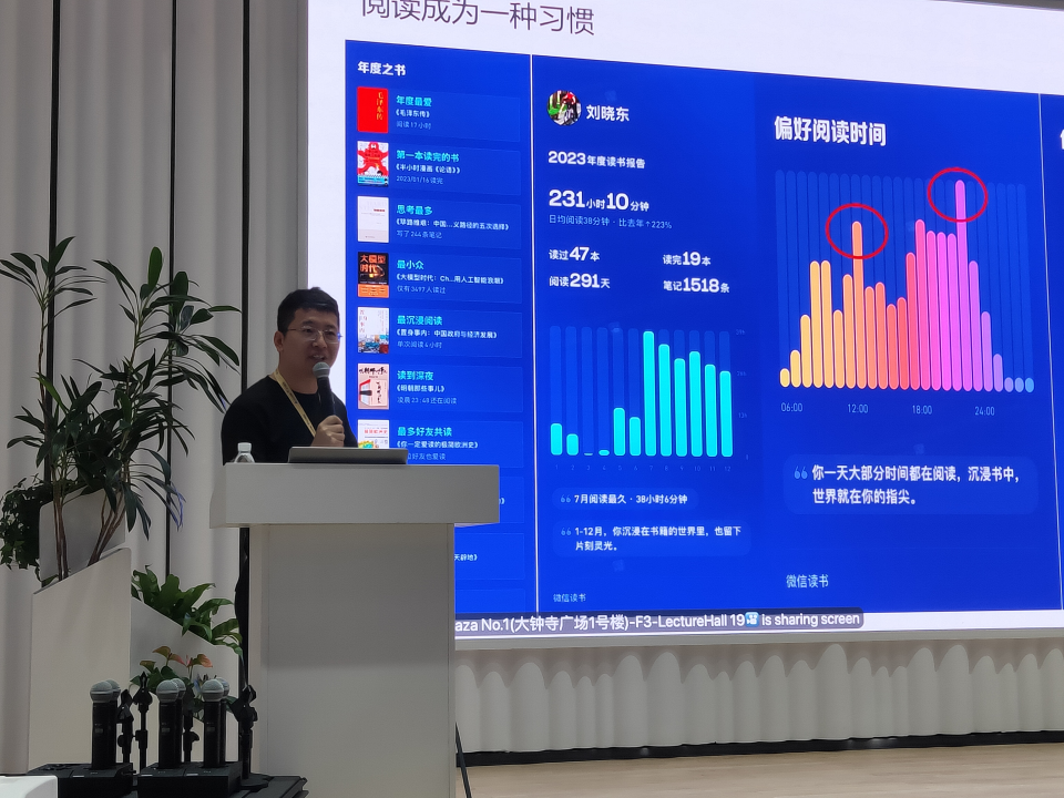 随后,字节跳动讲解人员向同学们详细介绍了公司的业务和产品,尤其是公司在创造社会价值层面的成就。其最新产品聚焦于乡村振兴、古籍修复等领域,链接公益力量,关怀障碍群体。