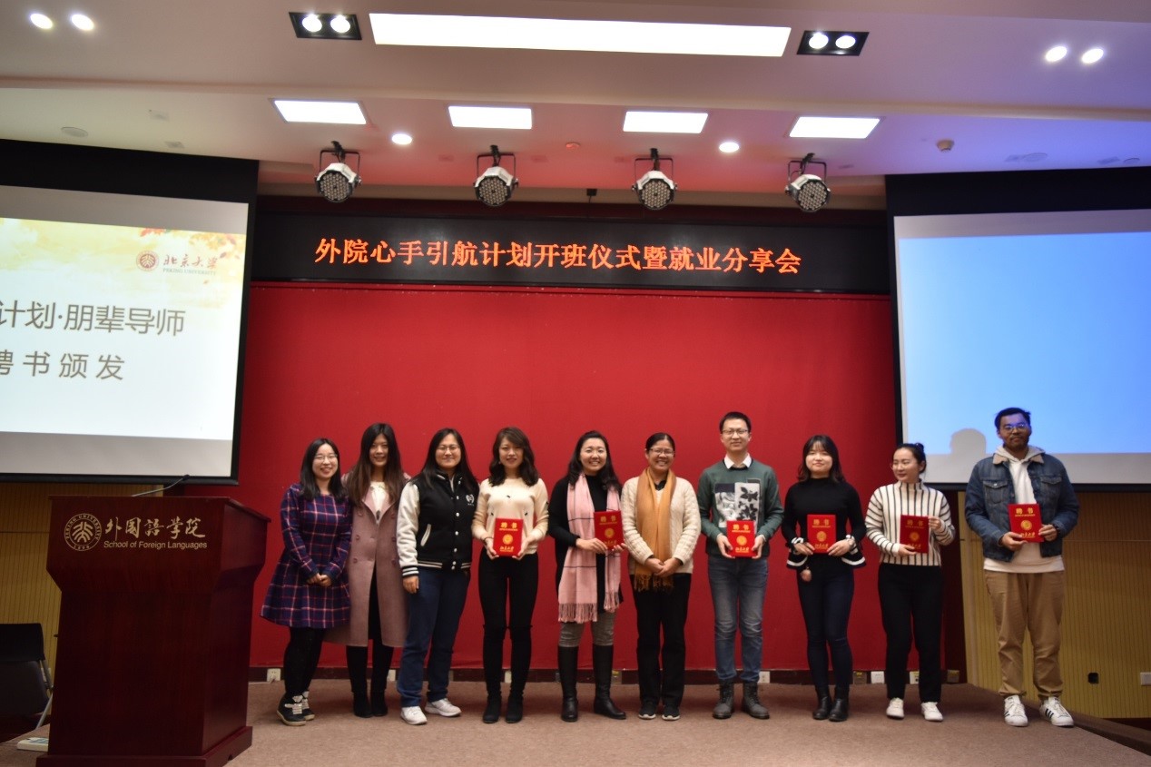 随后,团委书记王艳超、亚非系系主任魏丽明教授以及研究生会就业部部长王静妍向拼搏手机版登录入口“心手计划”朋辈引航导师颁发聘书并合影留念。首届拼搏手机版登录入口“心手计划”朋辈引航导师团共设7名,分别是:09届东南亚文化硕士毕业生、创新地图公司副总裁赵嵩;17届东南亚文化硕士毕业生、就职于字节跳动公司的马宇晨;17届东南亚文化硕士、任职于外交部的宋妍若然;15届英语翻译硕士、就职于中国工商银行总部的白艺茹; 16届日语翻译硕士、任职于中国银行总部的王晗;16届日语翻译硕士、就职于安永会计事务所的段愿;16届英语翻译硕士、就职于北京十一学校的唐梦莲。