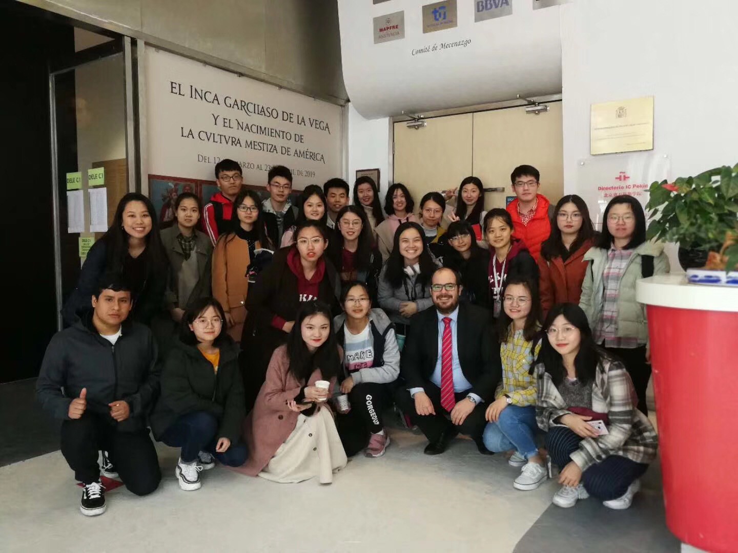 “世界读书日”即将到来之际,秘鲁大使馆在塞万提斯学院设展以纪念于 “世界读书日”逝世的“梅斯蒂索”作家印卡·加西拉索·德拉维加(Inca Garcilaso de la Vega)。受秘鲁大使馆邀请,2019年3月29日,拼搏手机版登录入口西班牙语专业2017、2018级本科团支部一起走进塞万提斯学院,开展为期半天的学习交流暨主题团日活动。