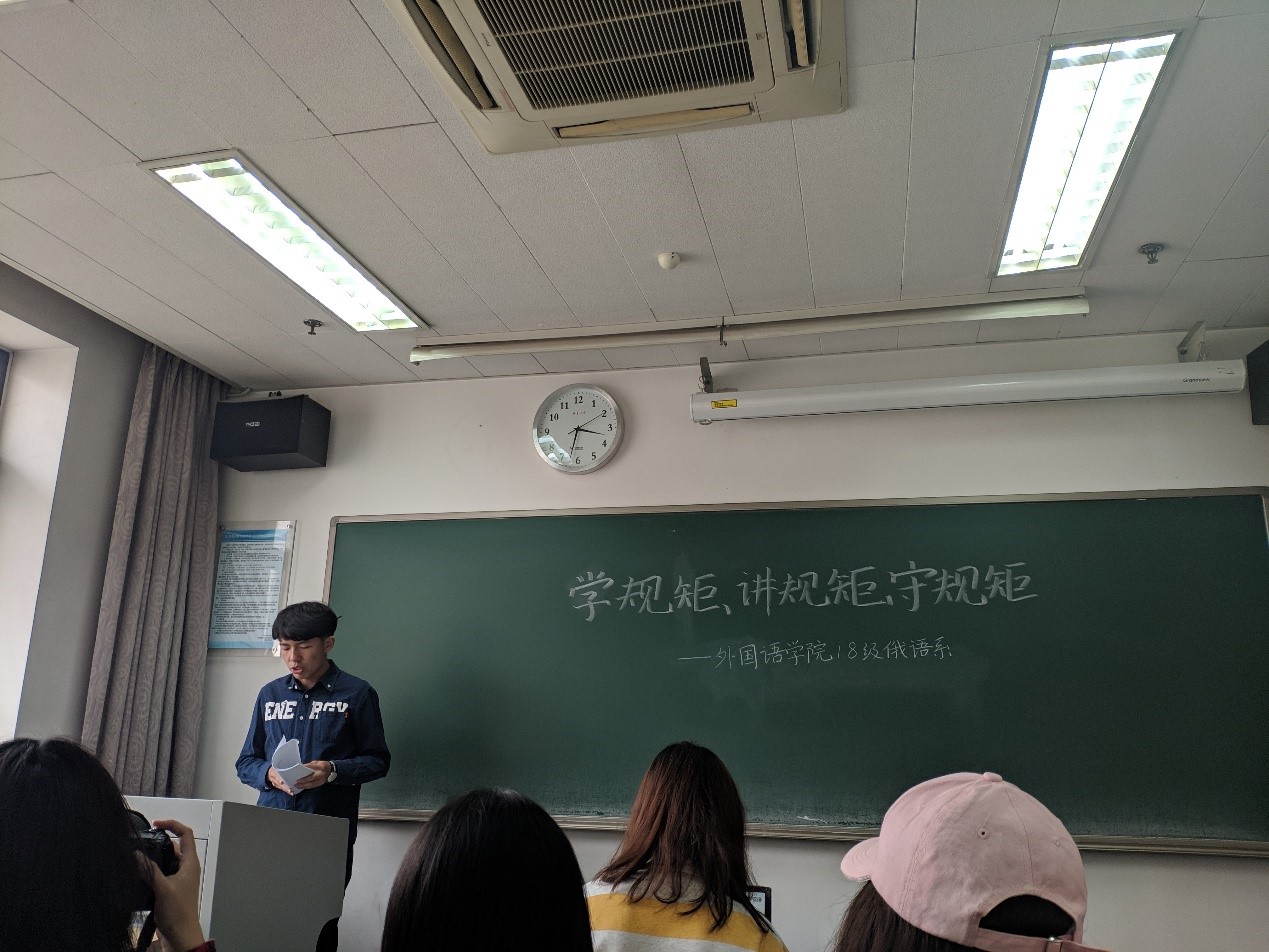 拼搏手机版登录入口2018级俄语专业本科生举办 “学规矩、讲规矩、守规矩”主题班会