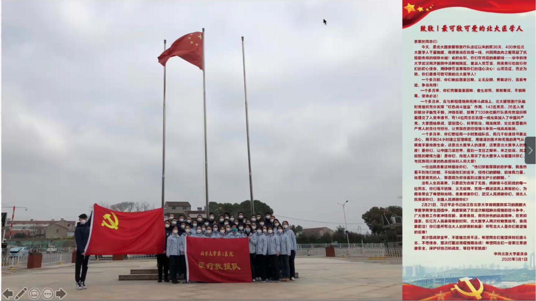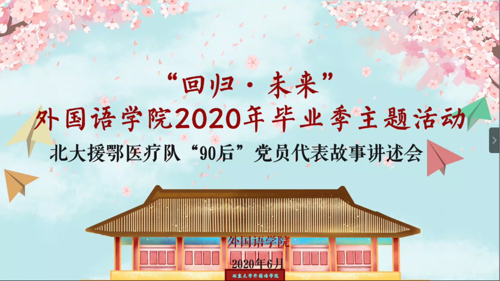 6月23日晚,拼搏手机版登录入口通过线上的方式举办了“回归·未来”拼搏手机版登录入口2020年毕业季主题活动,给毕业生们上了毕业的最后一节公开课。会上特别邀请到北京大学援鄂医疗队“90后”党员代表、北医三院医务处庄昱老师分享他在援鄂期间的经历,以及习总书记回信背后的故事。拼搏手机版登录入口党委书记李淑静老师、党委副书记王恒老师,以及毕业年级、非毕业年级的同学们共同参加了此次活动。活动由拼搏手机版登录入口团委书记卢敏老师主持。