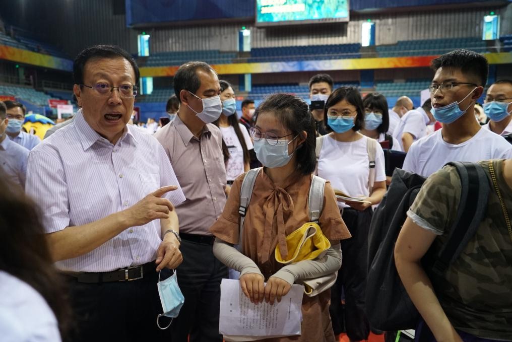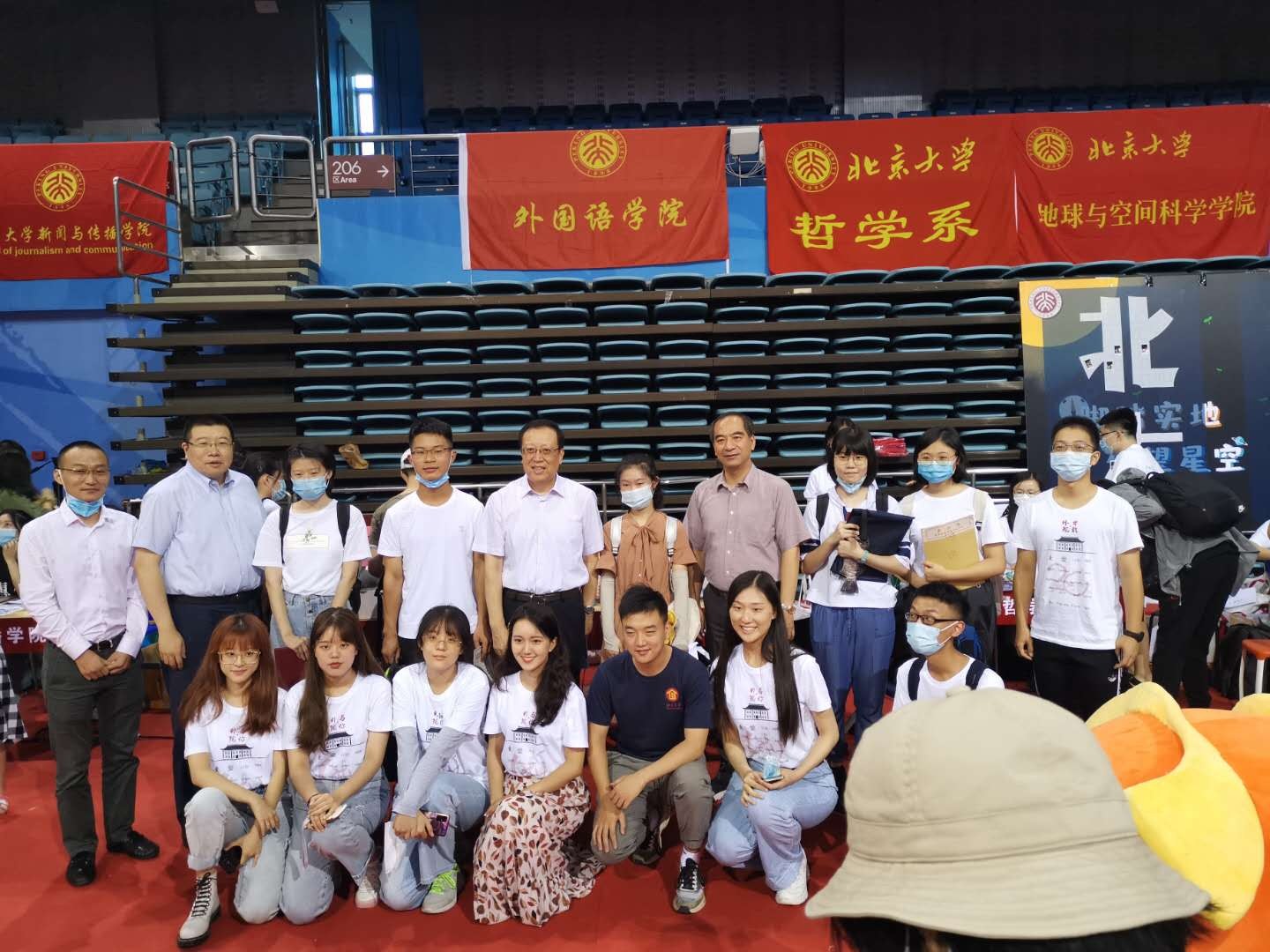 上午9:30左右,郝平校长一行来到拼搏手机版登录入口迎新接待站关心新生报到情况。郝平亲切询问新生基本情况,鼓励新生尽快适应大学生活,努力学习。郝平校长一行热切关心拼搏手机版登录入口的迎新进展,并同迎新接待站的师生们合影留念。