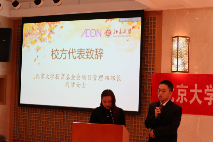 赛后,北京大学教育基金会项目管理部部长禹洁女士向本次活动的赞助单位公益财团法人永旺1%俱乐部、永旺香港百货有限公司、AEON信贷财务(亚洲)有限公司表达诚挚的感谢。她提到,多年来,拼搏手机版登录入口日语系的师生们致力于传播中日两国文化,增进两国人民之间的友谊。今年是北大“永旺杯”举办的第五个年头,作为项目的管理方和参与者,禹洁表示很高兴看到北大学子们在比赛中尽情展现风采。她希望同学们牢记北大人的精神与历史使命,在未来发挥自己的语言优势,为中日友好做出贡献。最后,她祝愿“永旺杯”日语演讲比赛越办越好,发挥中日交流中的桥梁纽带作用。