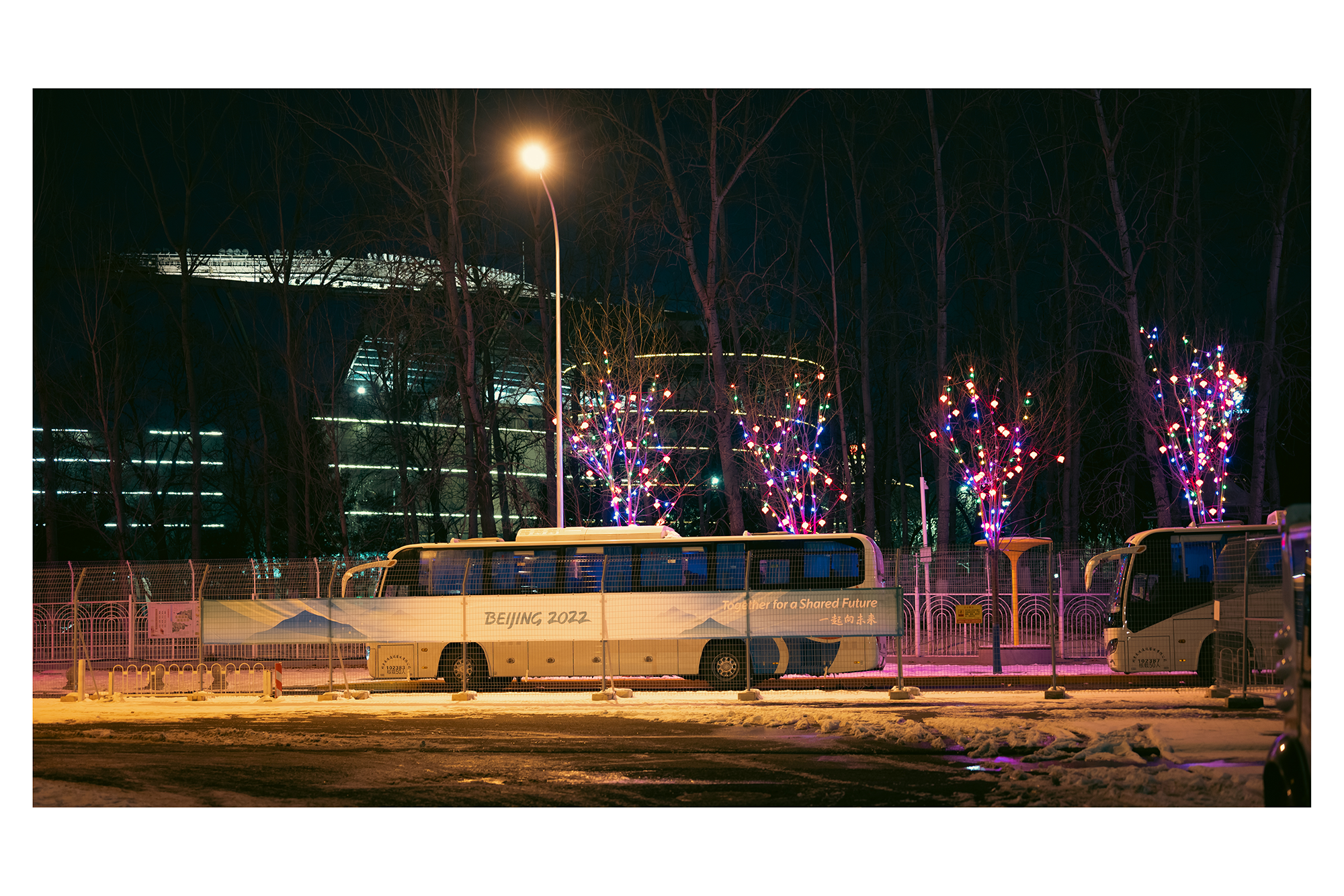 夜班后离开场馆的大巴