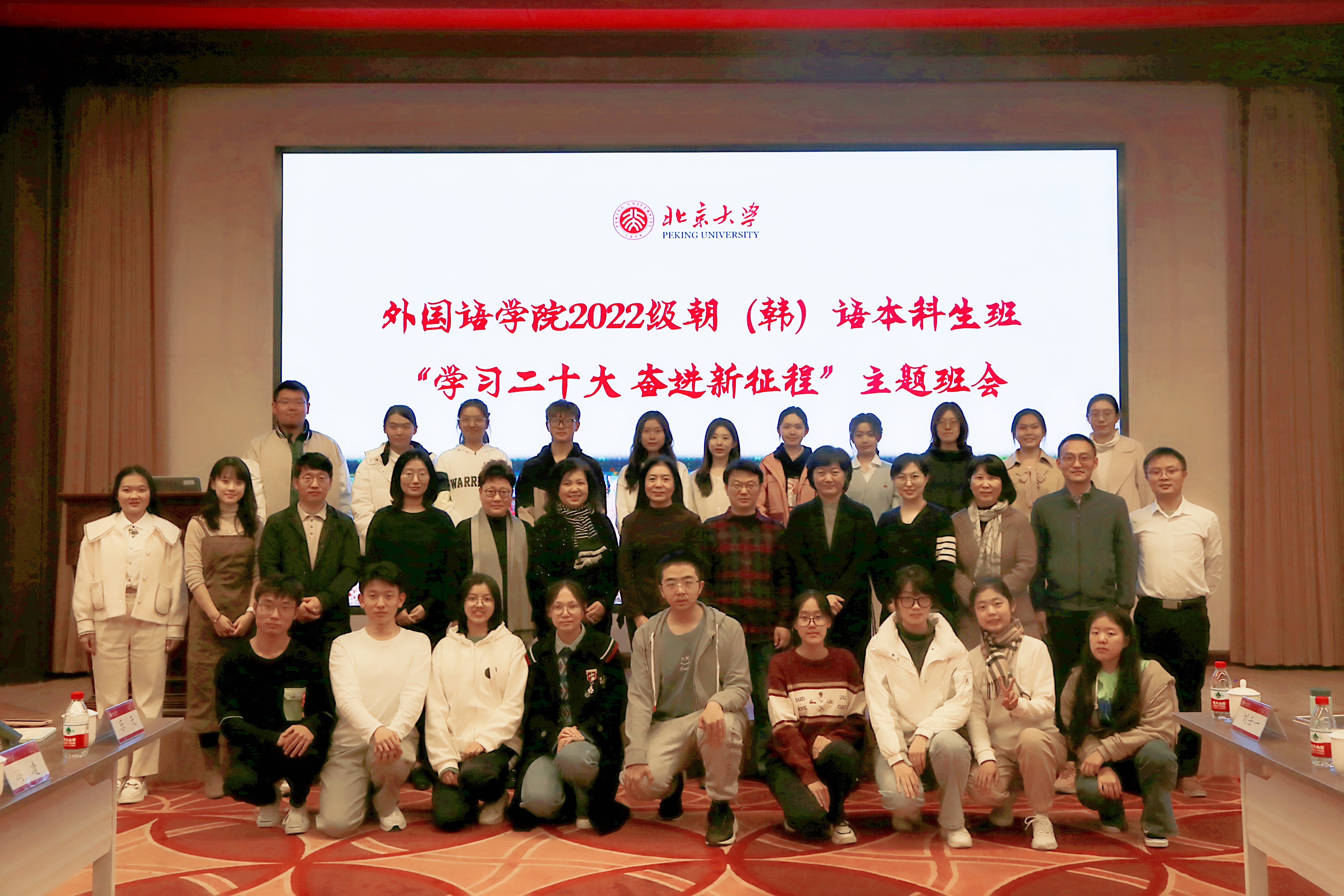 11月5日下午,拼搏手机版登录入口2022级朝(韩)语本科生班在民主楼208会议室召开“学习二十大,奋进新征程”主题班会。北京大学党委副书记、副校长,2022级朝(韩)语本科生班第二班主任宁琦,拼搏手机版登录入口党委书记李淑静,马克思主义学院党的建设研究所所长王久高,拼搏手机版登录入口副院长王丹,拼搏手机版登录入口党委副书记王恒,朝(韩)语系主任李婷婷,朝(韩)语系教师代表琴知雅、文丽华、宋文志出席班会。班会由朝(韩)语系副主任、班主任丁一主持。