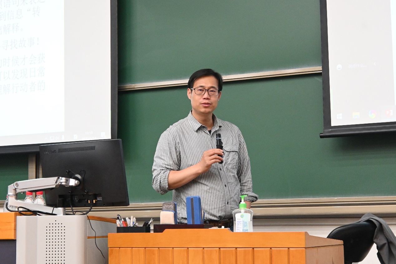 5月14日晚,北京大学元培学院副院长、社会学系副教授孙飞宇在二教203教室为拼搏手机版登录入口的同学们带来了题为“质性研究中的社会调查”的思政实践理论讲座。拼搏手机版登录入口2022级全体本科生共同参与学习,讲座由2022级本科生袁哲主持。