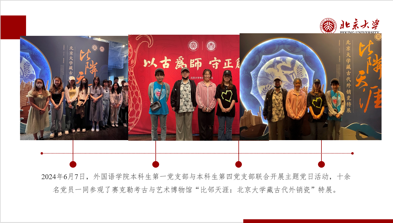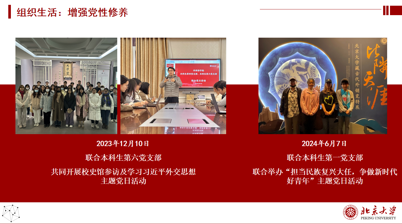 各支部积极动员党员深入社会基层课堂,躬身践行青年使命,助力青年党员感受时代脉搏,体悟社会发展。本科生第二党支部开展“重温领袖足迹,感悟伟大成就”暑期调研活动,引导支部党员与黄土相拥、与国情相逢、与人民同心、与时代同行,把论文写在祖国大地上。本科生第五党支部先后前往北京奥运博物馆与中国海关博物馆开展参访学习,将专题党课搬进爱国主义教育基地,用好红色资源,赓续红色血脉。世文所语言所研究生党支部策划主题党团日活动,集体前往蔡元培故居,感受蔡元培先生矢志不渝的精神风貌。日语研究生党支部组织开展颐和园益寿堂参访学习活动,引导党员同志深入了解“赶考”精神,坚定理想信念,汲取奋进力量。