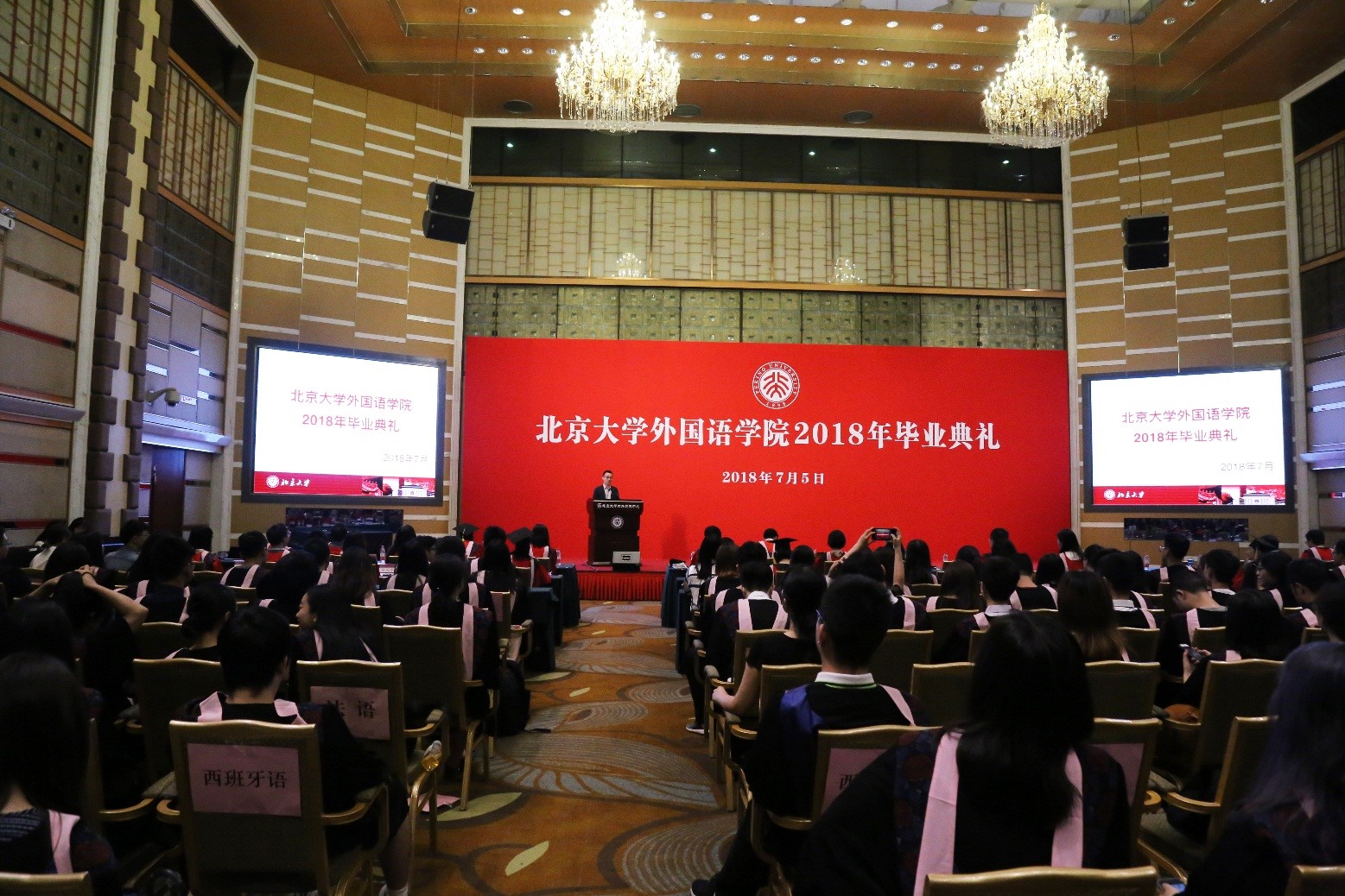 2018年7月5日上午,拼搏手机版登录入口2018年毕业典礼在英杰交流中心阳光厅举行。拼搏手机版登录入口院长宁琦、党委书记李淑静、副院长付志明、吴杰伟出席毕业典礼。参加典礼的还有阿拉伯语系系主任林丰民、教师代表廉超群,朝韩语系系主任王丹、副系主任南燕,德语系系主任黄燎宇,东南亚系系主任咸蔓雪、教师代表万悦容、郄丽莎、史阳、黄轶,俄语系系主任陈松岩、教师代表刘洪波、褚敏,法语系系主任董强、教师代表罗湉,南亚系系主任陈明、教师代表张亚冰、萨尔吉,日语系副系主任李奇楠、教师代表孙建军,西葡语系系主任范晔,西亚系系主任时光、教师代表王一丹、魏丽明,外国语言学及应用语言学研究所副所长高彦梅、教师代表胡旭辉,世界文学研究所教师代表胡旭东,英语MTI教育中心教师代表栗洁歆,团委书记王艳超、副书记邹雨浓、冯一帆及拼搏手机版登录入口2018届本科生、研究生同学。典礼由院党委副书记王恒主持。