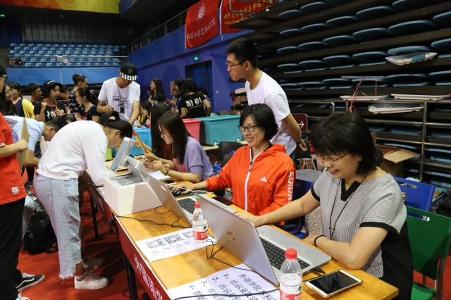 上午6:15,天刚蒙蒙亮,在学院师生共同努力下,温馨而有序的外院迎新接待站布置完毕。拼搏手机版登录入口副院长付志明、党委副书记王恒、教务办公室和学生工作办公室的老师以及学生志愿者们,在邱德拔体育馆内的本科生外院迎新接待站等待着新同学们的到来。