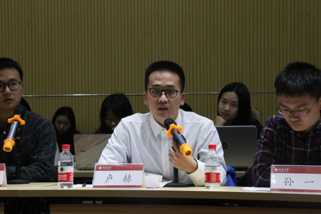 刘昊首先代表党支部汇报支部工作情况:支部不断夯实组织建设,自2016成立以来,发展党员78人;积极开展理论学习,结合支部党员特点开展海外学子讲党课等活动,提升支部战斗堡垒作用;积极开展“红色1+1”支部共建活动、“党团日联合主题教育活动”、“党支部创新立项”等活动,2018年荣获北京大学先进党支部称号。