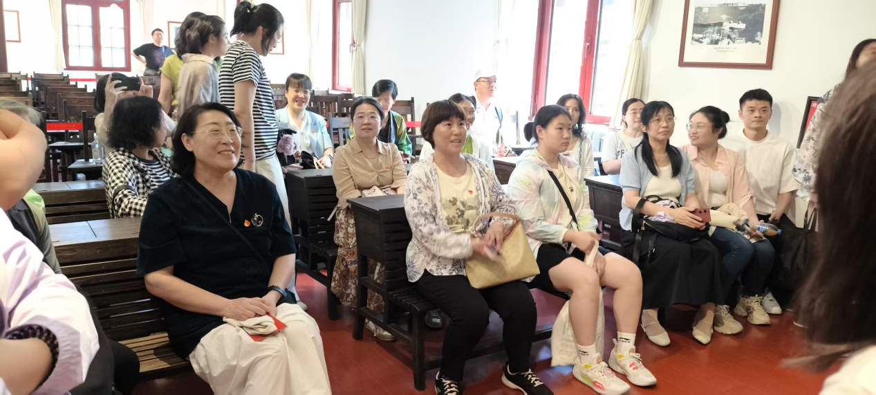 随后,参访团跟随讲解员的脚步,参观了图书管理室、校长办公室、文科学长室、第二阅览室、第三十六教室等老北大校舍场景。老师们在一件件泛黄的报刊前驻足凝视,在一张张复原的桌椅旁轻轻摩挲,仿佛穿越时空,置身于风云激荡的年代,沉浸式感受中国共产党的百余年光辉征程。