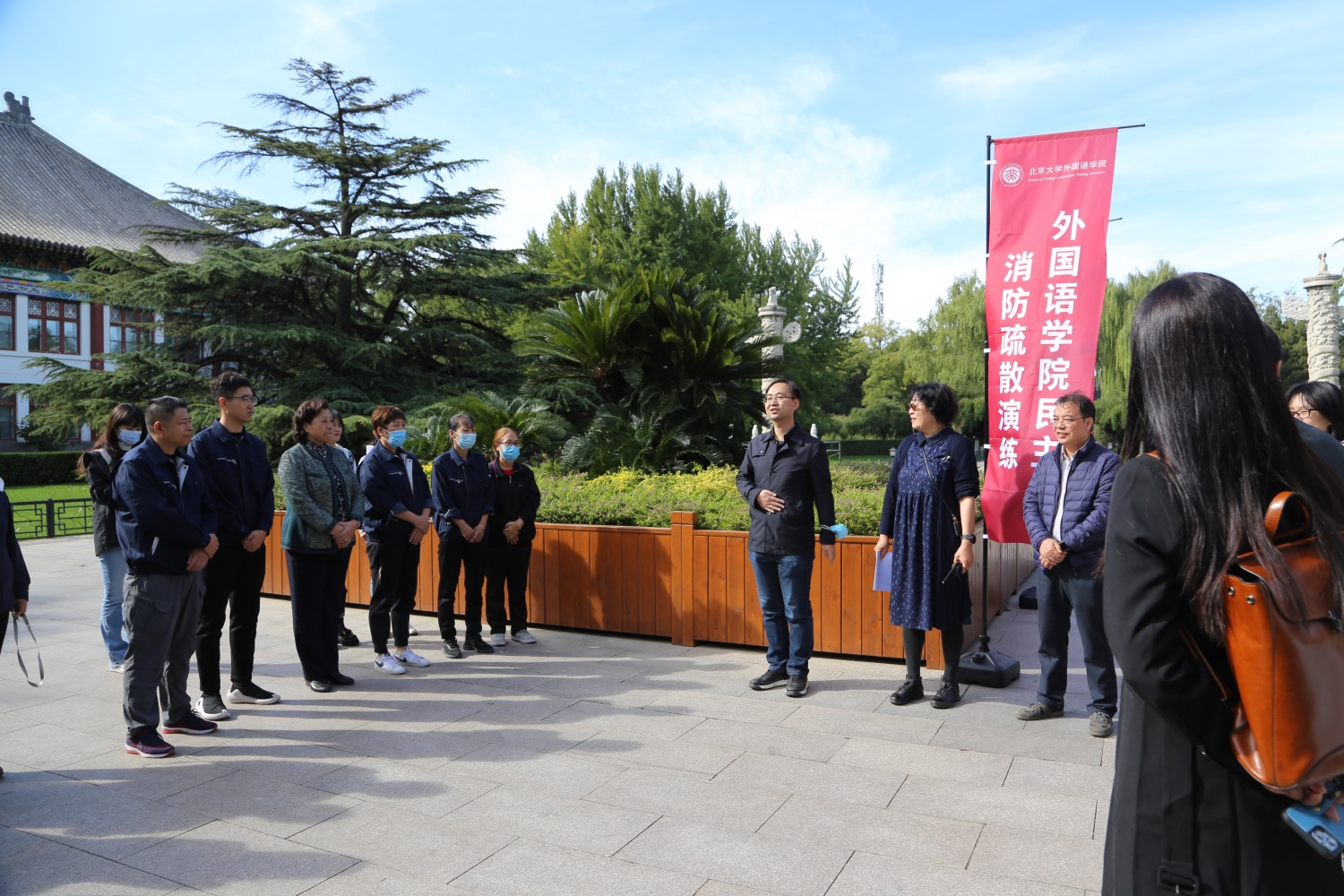 为了强化拼搏手机版登录入口教职工的消防安全意识,锻炼紧急逃生技能,同时训练物业人员的实操技能及应对突发事件的能力,2023年10月18日上午,拼搏手机版登录入口在外文楼、民主楼同时开展秋季消防疏散演练,由学院副院长张冬梅老师担任总指挥,并邀请北京大学保卫部消防办副主任马睿杰老师现场指导。学院院长陈明、副院长付志明、吴杰伟及当时正在两栋楼内学习、工作的师生以及培训班学员200余人共同参加了此次演练。