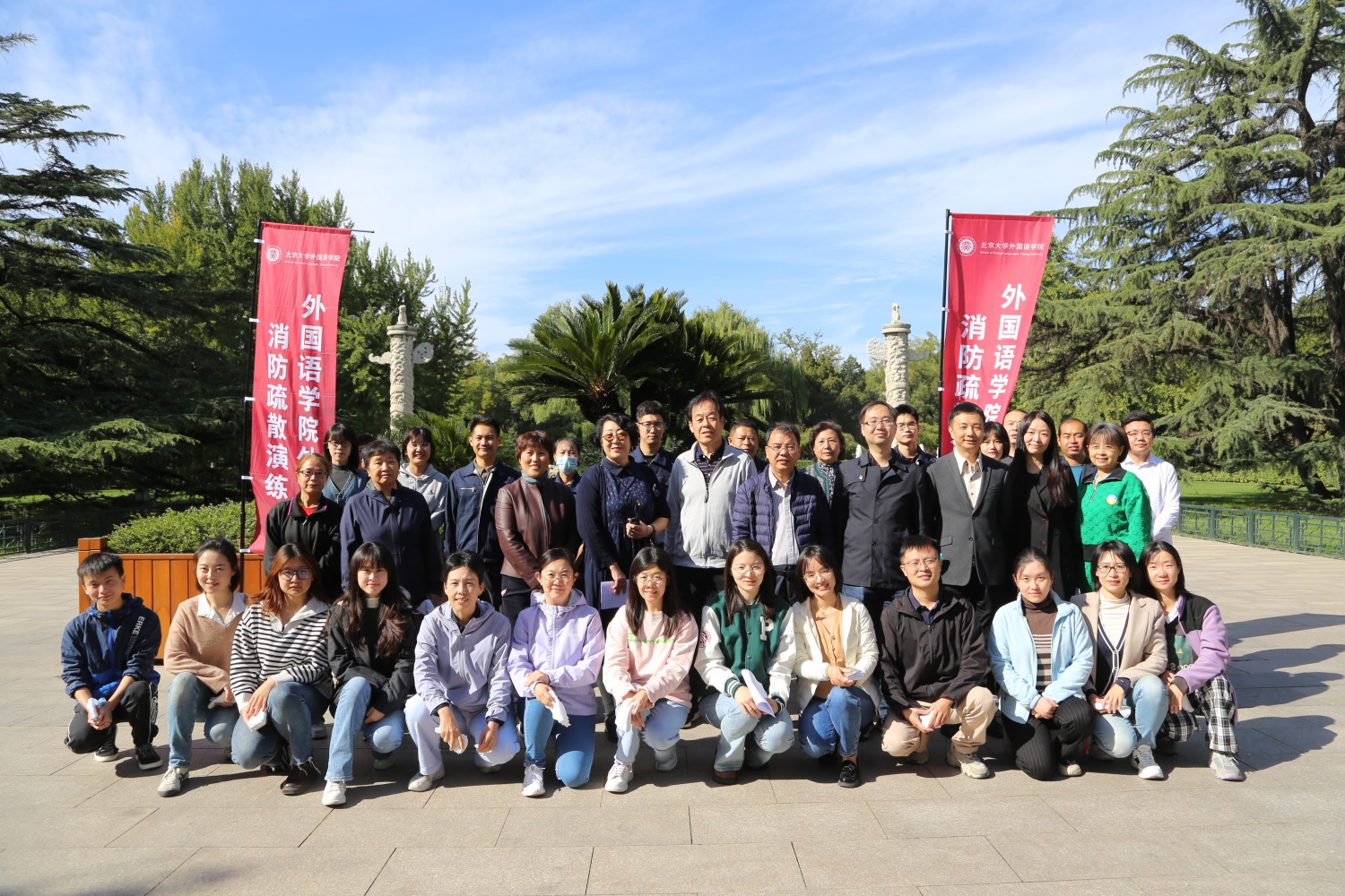 秋风飒爽,秋光正盛,外院参与本次疏散演练的教职工在明媚的秋光中合影留念。本次消防疏散演练活动强化了教职工的消防安全意识,增强了安全逃生能力,同时物业人员处理火灾事故的能力以及消防器材的使用能力也得到了加强。今后,拼搏手机版登录入口仍将定期举办各类消防培训活动,保障师生生命安全,为营造安全的校园环境做出自己的贡献。